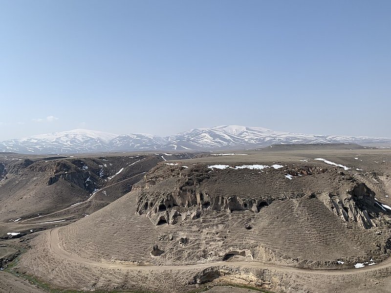 Когда-то это был крупный и богатый город, столица Армянского царства в период его расцвета. Сегодня это обширное поле с остатками построек из темно-красного и черного вулканического туфа. Ветер здесь почти всегда сильный, он гуляет среди руин и издает низкий свист в пустых оконных проемах. Сохранилось несколько значительных сооружений: собор, начатый в конце X века, церковь Святого Григория с поврежденными, но все еще различимыми фресками, и церковь Спасителя, часть которой обрушилась. Строгие линии армянской церковной архитектуры контрастируют с более поздними следами сельджуков — например, с изящно украшенным минаретом мечети Менючехра.